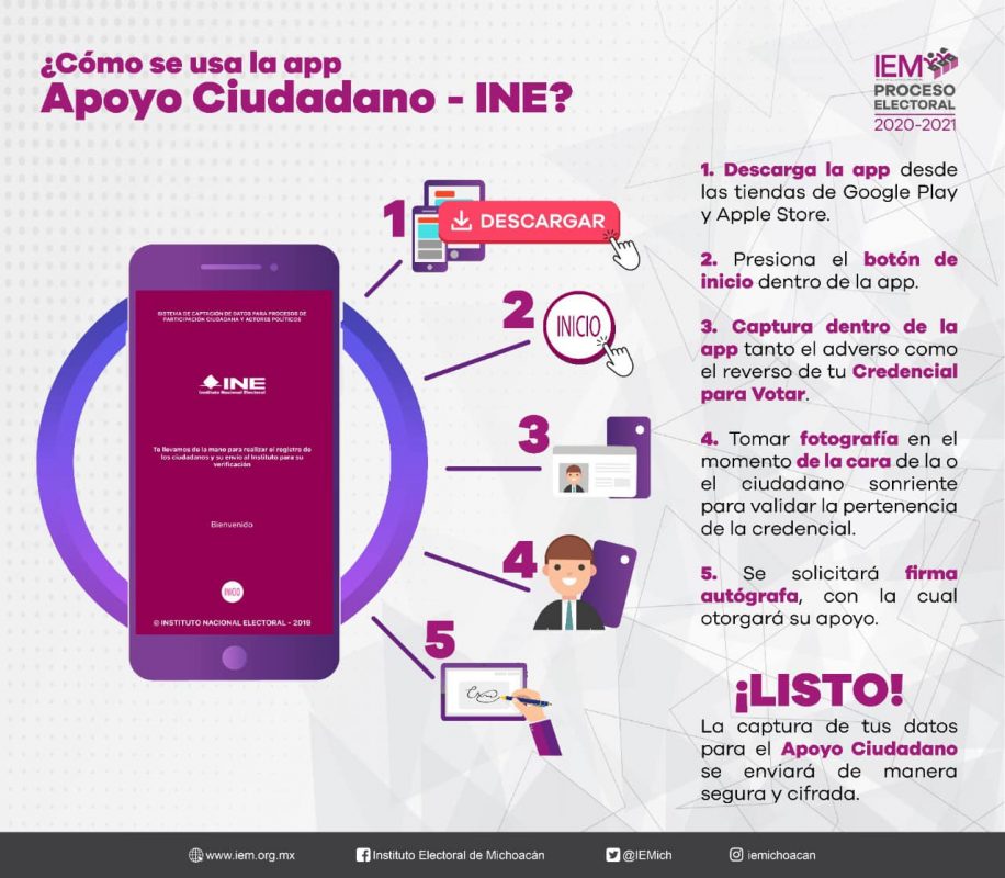 Morelia, Mich, sábado 30 de enero de 2021. El Instituto Electoral de Michoacán (IEM) informa a la ciudadanía en general que las y los aspirantes a una Candidatura Independiente, desde el pasado 24 de enero y hasta el 12 de febrero buscarán recabar firmas de ciudadanas y ciudadanos en espacios públicos para que puedan lograr obtener la Candidatura.