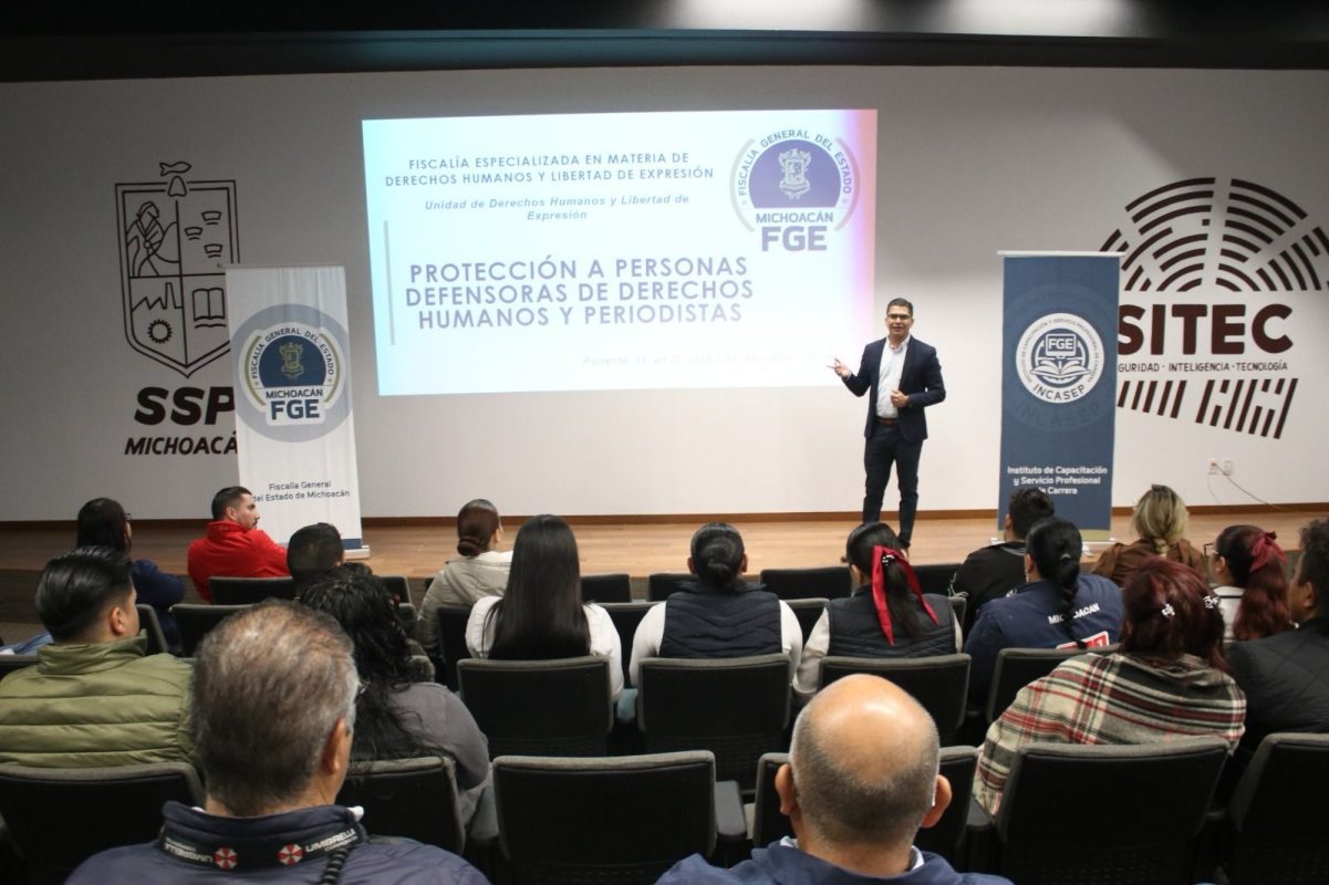 Durante la actividad, fueron impartidas tres capacitaciones, tituladas “Protocolo Búsqueda de personas desaparecidas y no localizadas, búsqueda de niñas, niños y adolescentes”; “Protocolo RND: Registro Nacional de Detenciones” y “Protección a personas defensoras de derechos humanos y periodistas”.