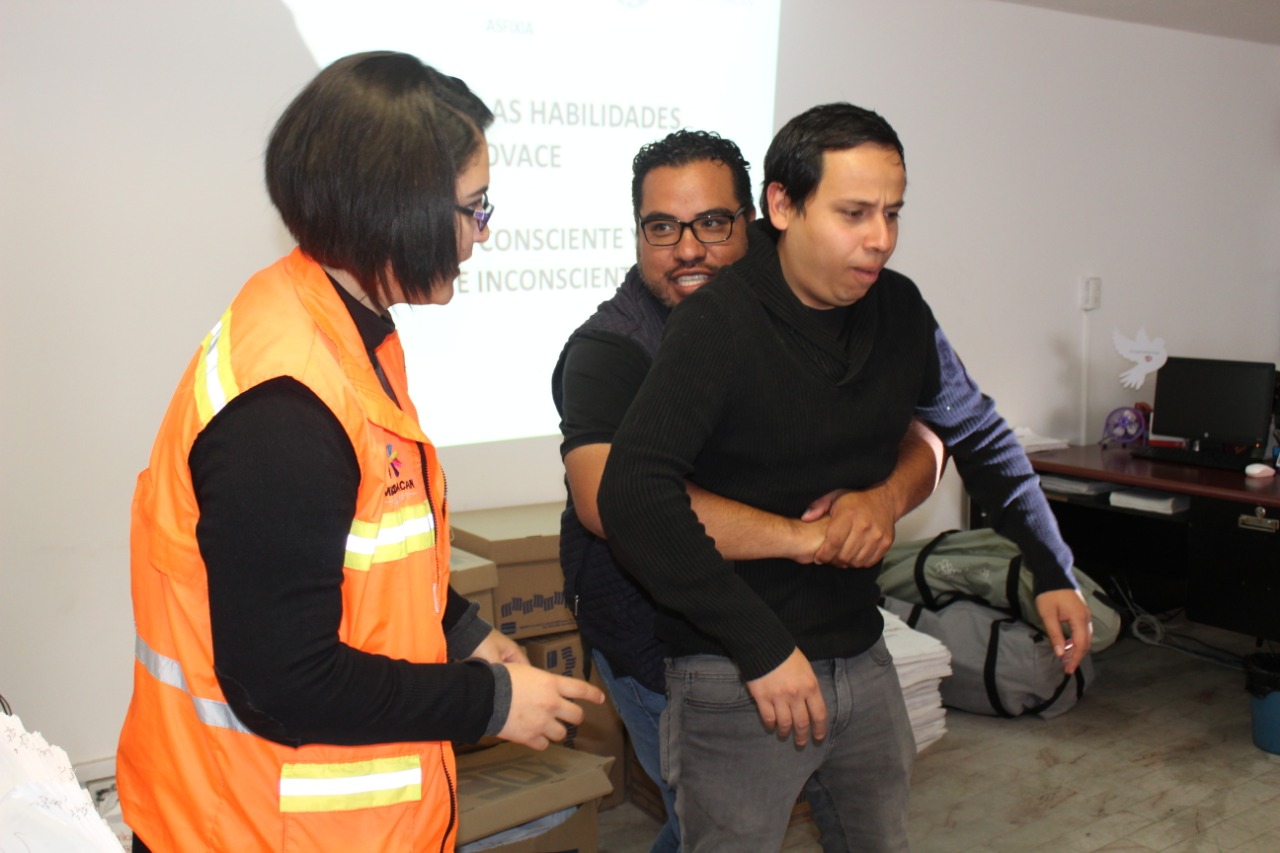 Durante más de seis horas, instructores de la Coordinación Estatal de Protección Civil, capacitaron al personal de la Semigrante en técnicas para atender lesionados y emergencias en paro respiratorio, asfixia, ataque general y cardiaco, así como maniobrar durante un atragantamiento parcial o total y reanimación cardiovascular.