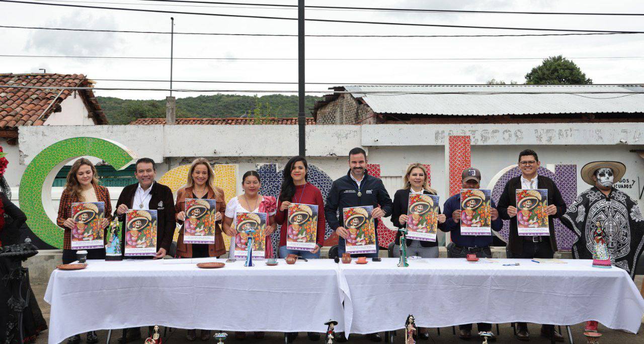 Morelia, Mich., 10 de Octubre de 2023.- En la víspera de la tradicional celebración del Día de Muertos que se realiza en Morelia, autoridades del gobierno municipal, que encabeza el Presidente Alfonso Martínez Alcázar, anunciaron este martes, que la tenencia de Capula se encuentra lista para iniciar la XIII Feria Nacional, Artesanal y Cultural de la Catrina.