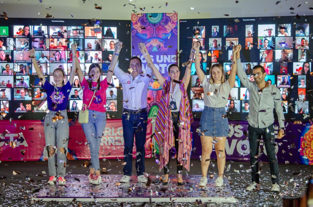 «Caballo que alcanza, rebasa y gana», proclamó Herrera durante cuatro encuentros virtuales para la defensa del triunfo, realizados en forma simultánea con ciudadanía de todo el estado, así como con liderazgos y militancias del PRI, PAN y PRD.