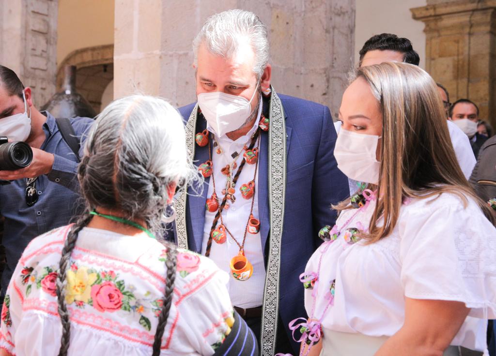 Morelia, Mich., a 02 de Febrero del 2022.- El gobernador Alfredo Ramírez Bedolla y la titular del Fondo Nacional para el Fomento de las Artesanías (Fonart), Emma Yanes Rizo, firmaron convenio de coordinación para fortalecer y promover la riqueza cultural de Michoacán a través de las y los artesanos.