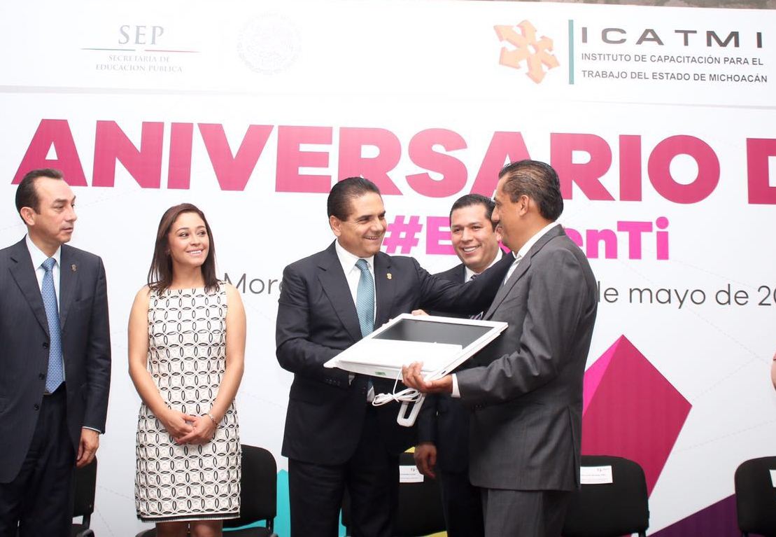 El mandatario, Silvano Aureoles, hizo entrega de equipo de capacitación al plantel Santa María en Morelia, así como de las primeras acreditaciones de competencia laboral a instructoras y personal del Icatmi.