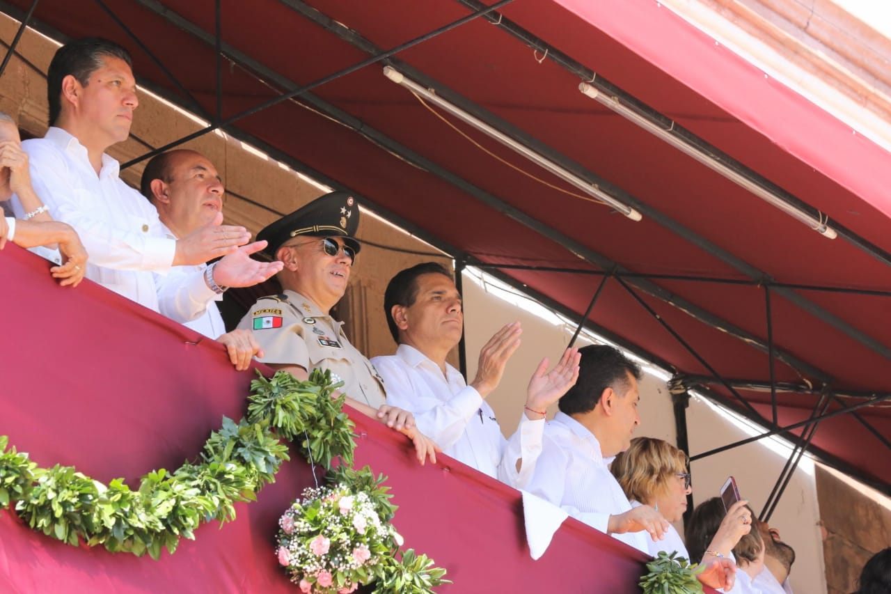 Durante este desfile, los presentes se contagiaron del júbilo que emitieron las distintas bandas de guerra y las voces de los alumnos que cantaron con ritmo y entusiasmo, pese al calor que distingue al municipio considerado el corazón de Tierra Caliente.
