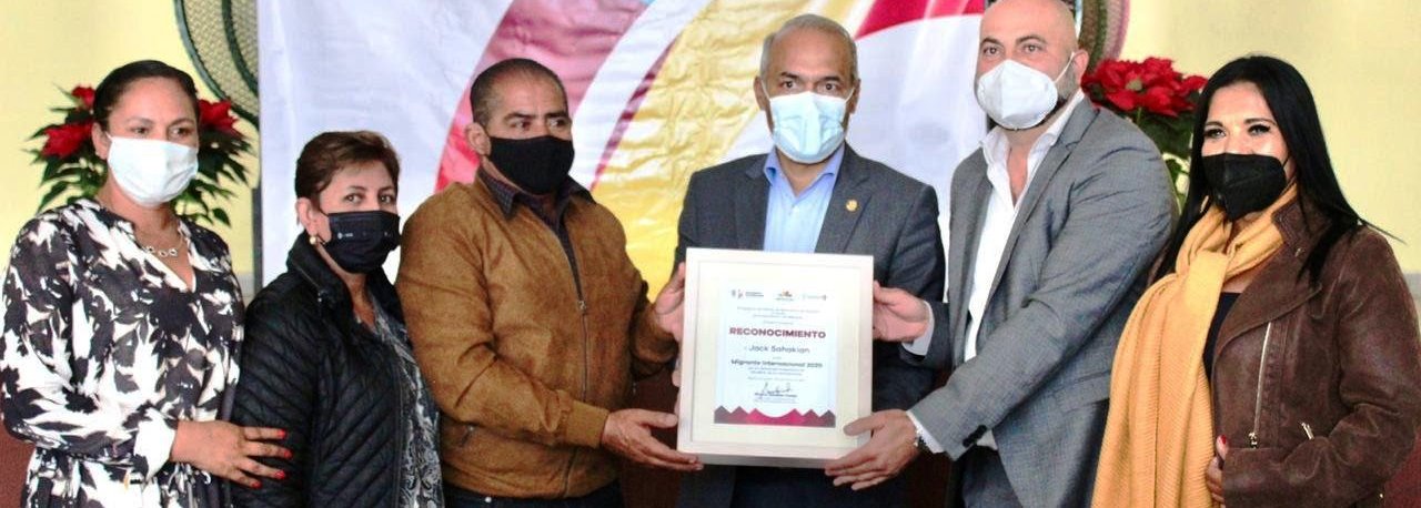 En el evento realizado en este municipio, donde más de la mitad de sus habitantes radica en Estados Unidos, el titular de la Semigrante, José Luis Gutiérrez Pérez, en representación del Gobernador Silvano Aureoles Conejo, entregó el reconocimiento Migrante Internacional 2020 a Jack Sahakian, por su importante trayectoria en favor de la comunidad Michoacana y migrante radicada en la entidad.