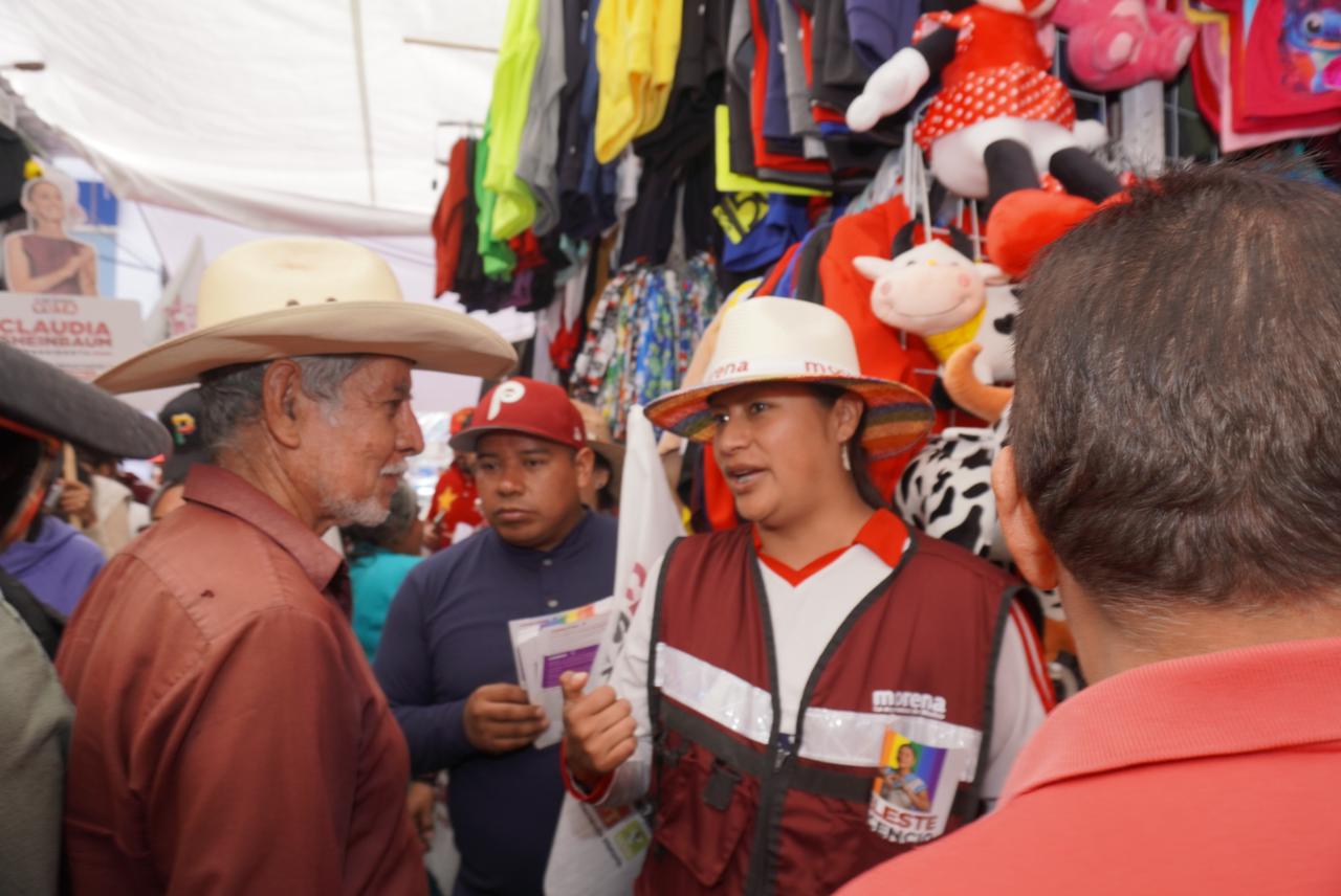 La candidata de Morena, PT y PVEM al Senado de la República, Celeste Ascencio, realizó hoy una nueva jornada proselitista a ras de tierra para dialogar con la gente, escuchar sus inquietudes y darles a conocer sus propuestas legislativas y el plan C de la Cuarta Transformación.