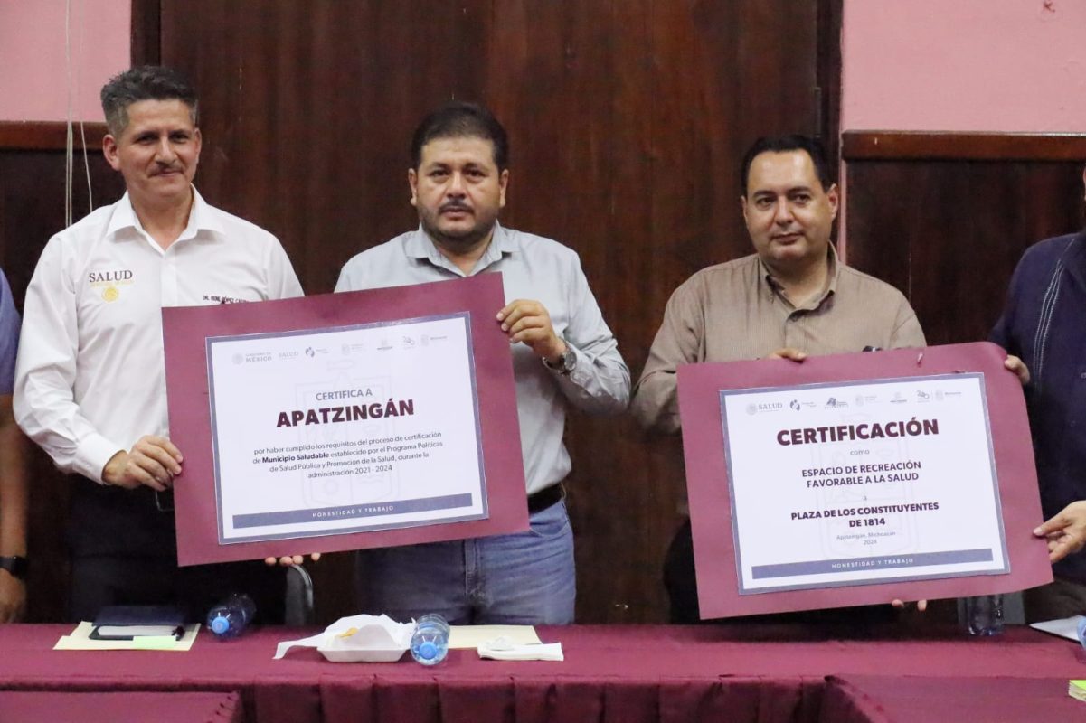 Apatzingán, Mich., 22 de Julio de 2024.- La Séptima Jurisdicción Sanitaria en coordinación con el Gobierno Municipal certificó el municipio como Promotor de Salud, dicho título se logró luego de amplios procesos en los que predomina campañas contra el Dengue, prevención de enfermedades y mantener espacios públicos libres de tabaco.