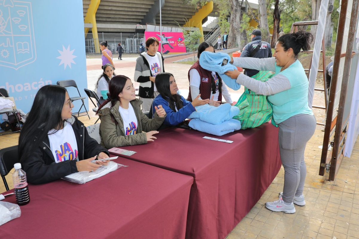 Morelia, Mich, 2 de Diciembre de 2023.- El Festival Jalo por la Música organizado por el Gobierno de Michoacán, dará la oportunidad a miles de personas de disfrutar de Panteón Rococó y El Gran Silencio de forma gratuita, y al mismo tiempo, de ayudar a quienes más lo necesitan con una cobija nueva para esta temporada de frío.