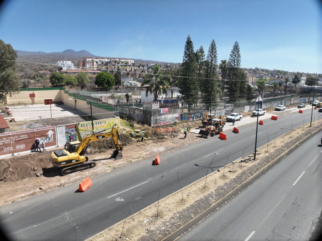 Y es que se han iniciado los trabajos de demolición de guarniciones y reubicación de arbolado y servicios sobre el camellón central, para contar con un carril de almacenamiento que permita la vuelta y el desvío de flujo vehicular rumbo al centro de Seguridad, Inteligencia y Tecnología (Sitec), vía que se habilitará como alternativa al tránsito que ingresa al fraccionamiento.