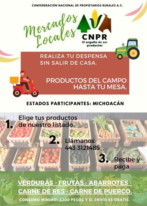 Morelia, Mich., 28 de Abril 2020.- La Confederación Nacional de Productores Rurales (CNPR) que preside el diputado Eduardo Orihuela Estefan, arrancó el programa “Mercados Locales”, mismo que tiene el objetivo de apoyar precisamente a los productores a comercializar sus productos, llevándolos a los domicilios de las personas y así contribuir con el programa #QuedateEnCasa.