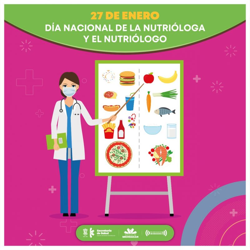Morelia, Michoacán, a 27 de enero de 2021.- La Secretaría de Salud de Michoacán (SSM), reconoce y felicita a las y los 115 nutriólogos adscritos a la institución, quienes coadyuvan en el cuidado y prevención de enfermedades crónicas, mejorando los hábitos alimenticios de la población.