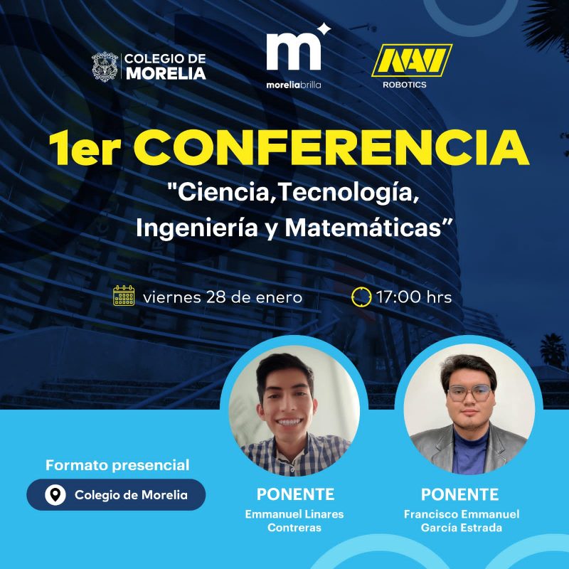 Morelia, Mich., a 26 de Enero del 2022.- Con la finalidad de consolidarse como una institución promotora de la educación entre las y los jóvenes morelianos, el Colegio de Morelia hace extensiva la invitación a la primera conferencia presencial de “Ciencia y Tecnología, Ingeniería y Matemáticas”, que se llevará a cabo el próximo viernes 28 de enero a las 17:00 horas.