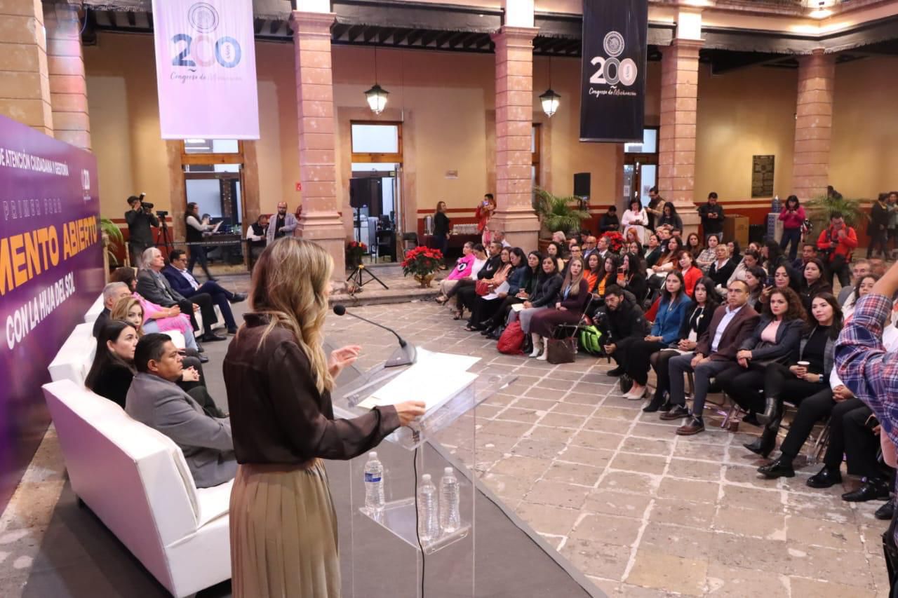 Morelia, Mich., a 6 de Diciembre de 2024.- Con el propósito de generar un canal de comunicación y vinculación con la sociedad en general, donde puedan ser escuchadas y atendidas tanto las necesidades como las propuestas que se tengan para mejorar o crear ordenamientos jurídicos, el Congreso del Estado arrancó con el Foro Parlamento Abierto organizado por la Presidenta del Comité de Atención Ciudadana y Gestoría, Diputada Brissa Ireri Arroyo Martínez, en esta ocasión, en el marco de los 16 días de activismo contra la violencia de género.