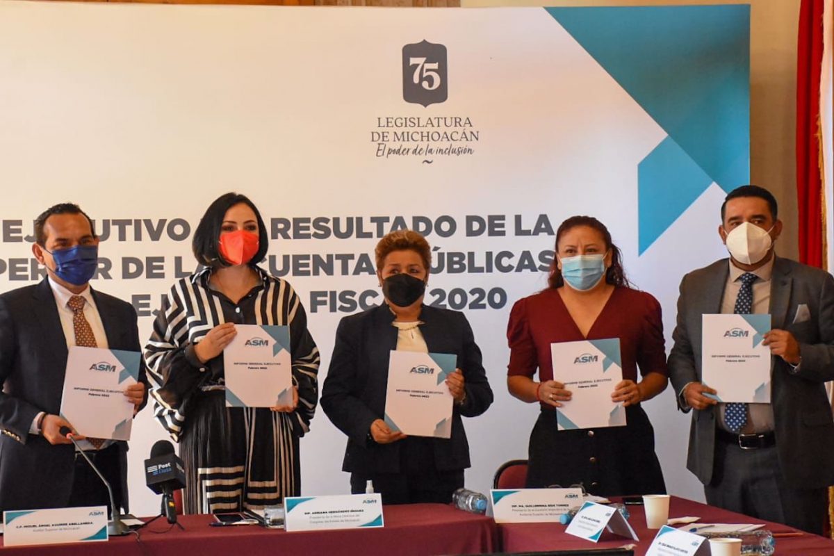 El documento fue entregado de manera formal por el titular de la Auditoría Superior de Michoacán (ASM), Miguel Ángel Aguirre Avellaneda, a la Presidenta de la Mesa Directiva del Congreso del Estado de Michoacán de Ocampo, diputada Adriana Hernández Íñiguez y a los legisladores Ma. Guillermina Ríos Torres, Seyra Anahí Alemán Sierra y César Enrique Palafox Quintero, presidenta e integrantes de la Comisión Inspectora de la ASM, respectivamente.