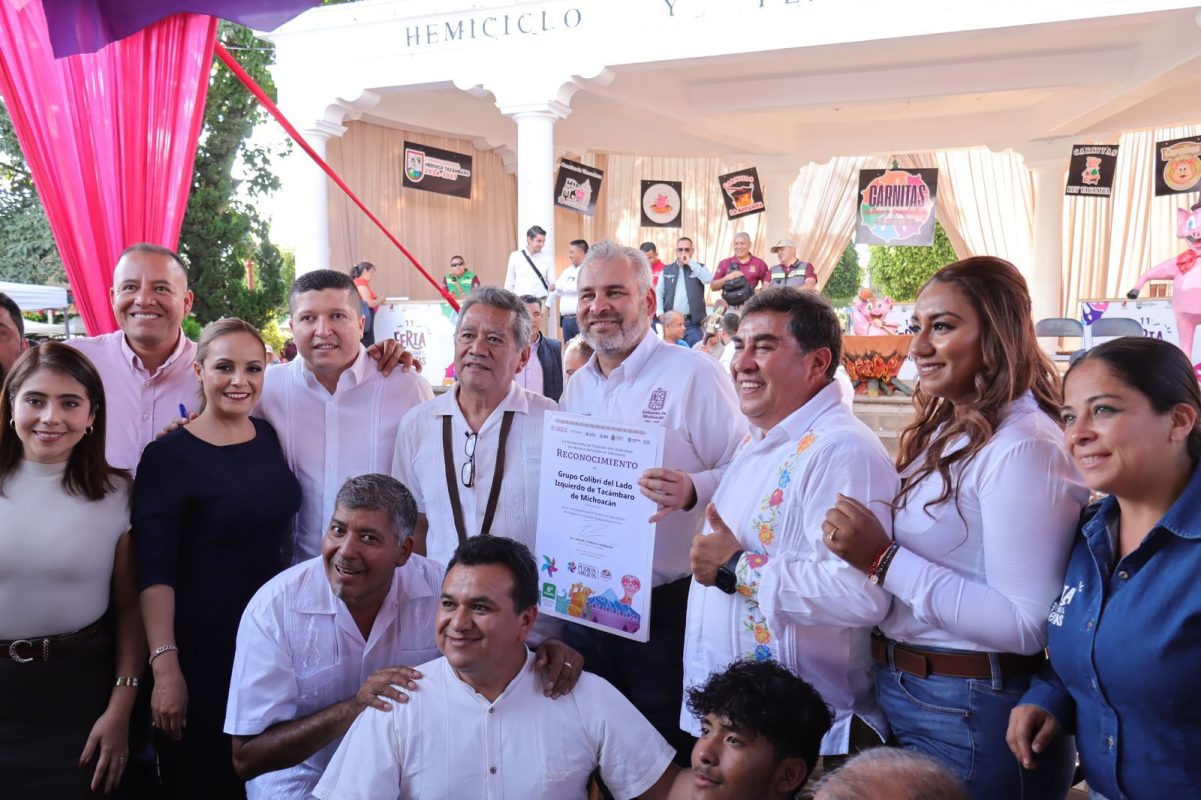 El diputado participó en la ceremonia de inauguración de la Feria de las Carnitas, que se desarrolla cada año en el pueblo mágico y acompañó al alcalde de Tacámbaro, Salvador Bastida García, en el recorrido que se realiza para degustar este tradicional platillo michoacano, reconocido a nivel nacional e internacional; además de apreciar las artesanías, danzas y música de la región.