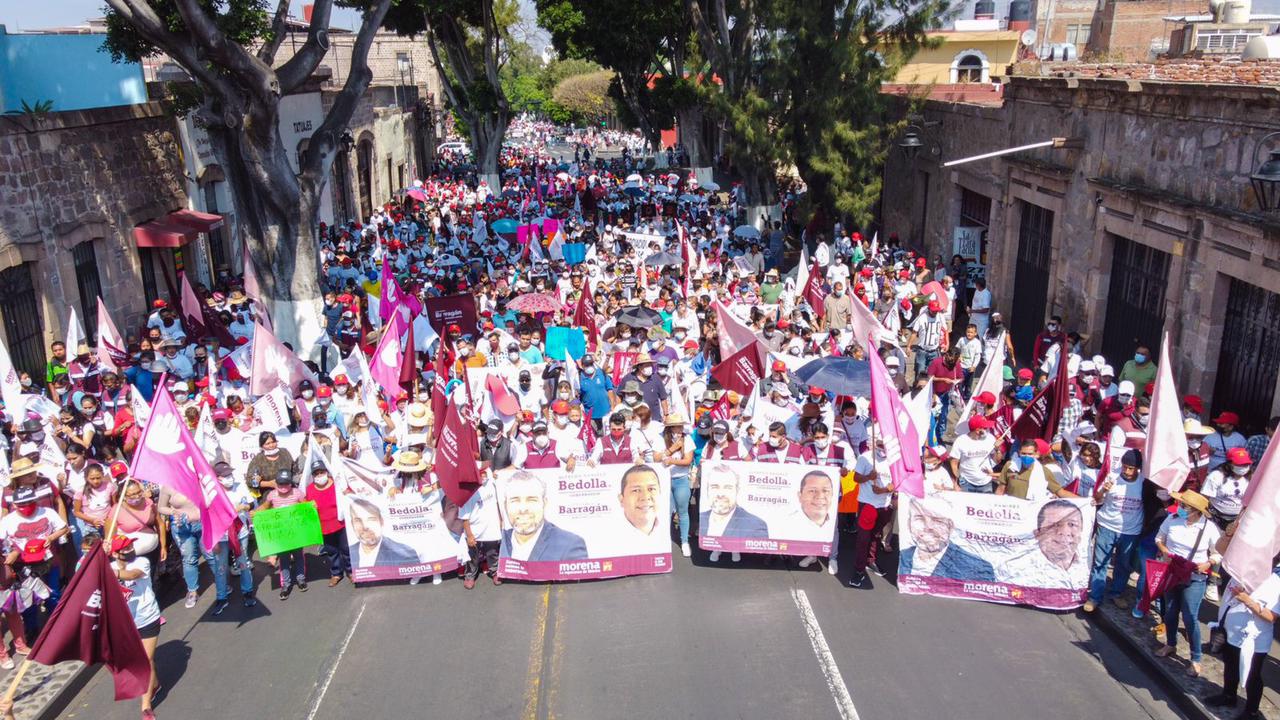 Morelia, Mich., a 31 de mayo de 2021.- Nuestro candidato y próximo gobernador Alfredo Ramírez Bedolla, representa el deseo de cientos de miles de michoacanas y michoacanos que esperan la llegada de la cuarta transformación.