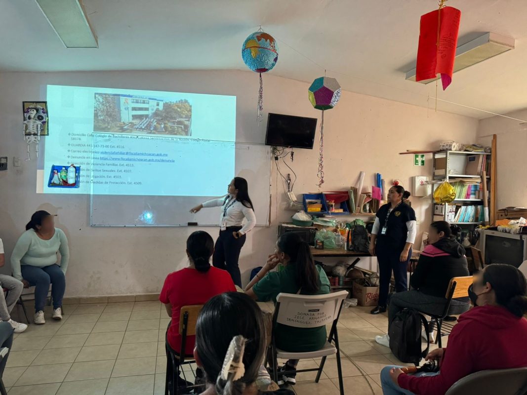 Un equipo interdisciplinario integrado por personal perteneciente a la Fiscalía Especializada para la Atención de Delitos de Violencia Familiar y de Género se trasladó a la institución donde impartió las charlas: “Violencia familiar”, “Violencia en el noviazgo”, “Hostigamiento sexual”, “Acoso sexual” y “Alcoholismo y drogadicción”, las cuales fueron dirigidas a padres y madres de familia, así como al personal docente.