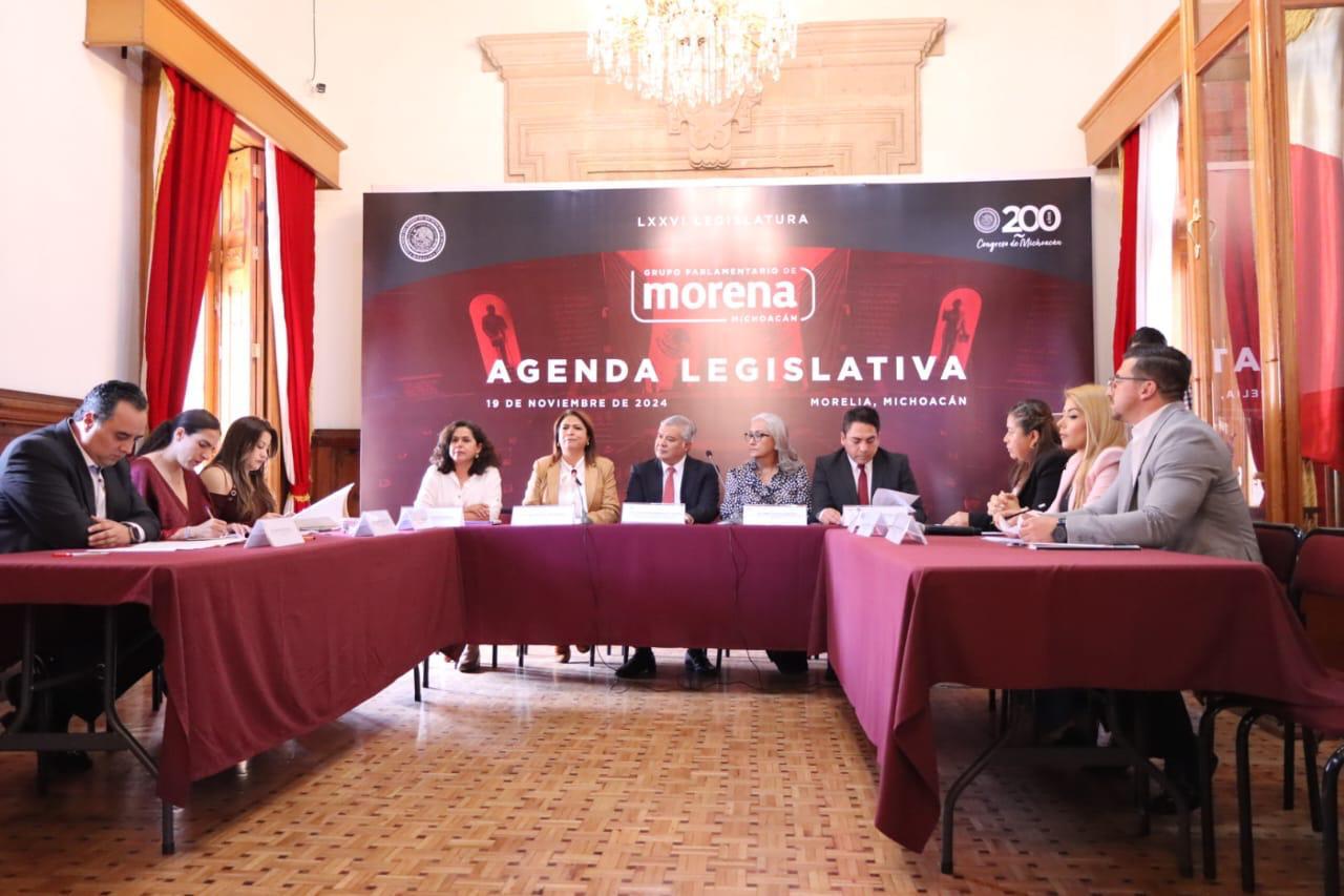 Morelia, Mich., a 20 de Noviembre de 2024.- Con cuatro ejes principales como son: los derechos humanos, derechos sociales, seguridad y justicia para la paz social, el Grupo Parlamentario del Partido de Movimiento de Regeneración Nacional (MORENA) presentó su Agenda Legislativa que regirá su desempeño en la LXXVI Legislatura.