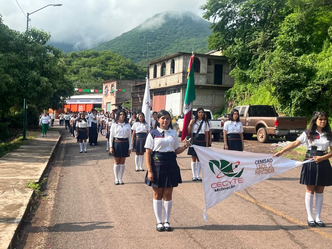 Morelia, Mich., 16 de Septiembre de 2024.- Desde la región Sierra-Costa hasta el Oriente michoacano, estudiantes del Colegio de Estudios Científicos y Tecnológicos del Estado de Michoacán (Cecytem) mostraron su patriotismo y gallardía en el desfile cívico militar conmemorativo por el 214 Aniversario de la Independencia de México.