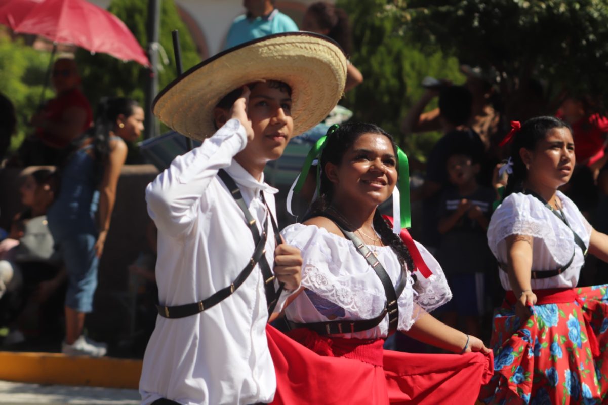 Desde temprana hora inició el desfile con la participación de niños y niñas de preescolar, primaria, secundaria, preparatoria y nivel superior, quienes mostraron diversas estampas de adelitas y revolucionarios así como tablas rítmicas y creativas pirámides.