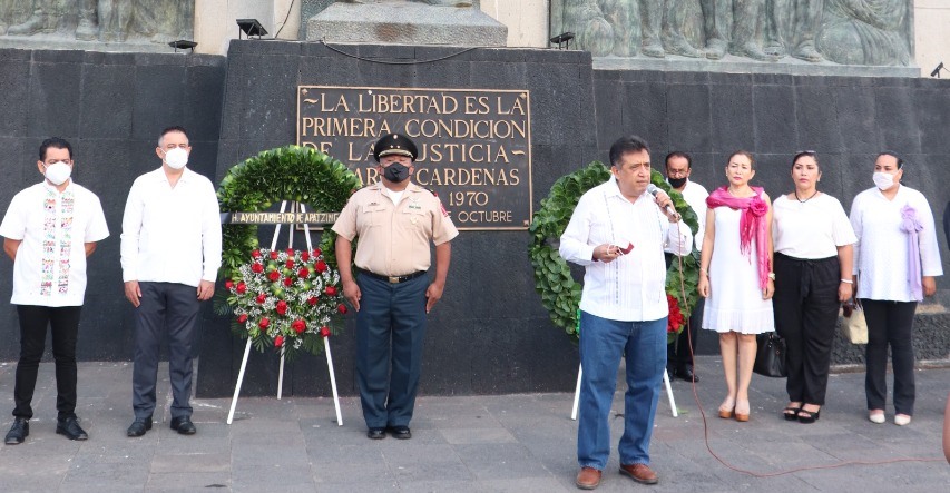 Acompañado de funcionarios municipales y de representantes de las logias masónicas de Apatzingán, el acalde recordó la labor que realizó Lázaro Cárdenas en la construcción del México moderno, pues además del reparto agrario y el aprovechamiento del petróleo, generó el máximo crecimiento económico y social que se ha visto en décadas.