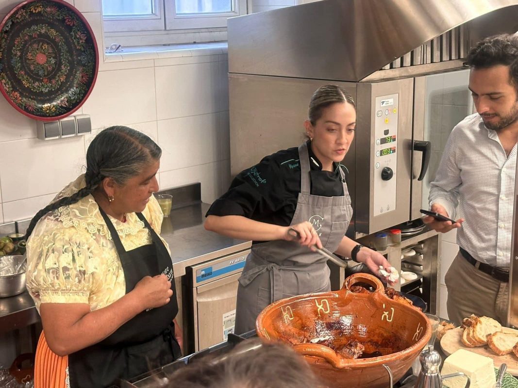 Morelia, Mich., 18 de junio de 2024.- Una de las mujeres sabias de la cocina tradicional michoacana, la maestra Benedicta Alejo Vargas, se encuentra en Casa de México en España impartiendo diversos talleres y para realizar diversos eventos gastronómicos en el marco de la Semana de Michoacán; ella se encuentra acompañada por la chef Mariana Valencia.