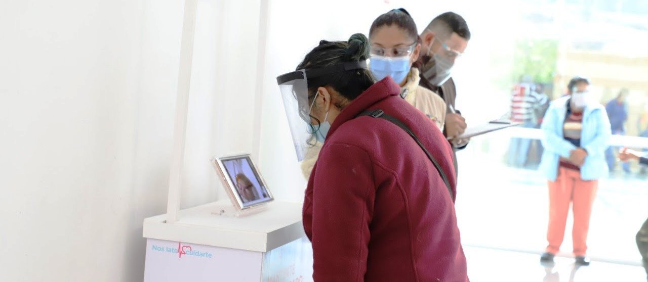 Con el traslado al nuevo hospital, en la entrada del mismo se instaló un pequeño modulo, equipado con una tableta, conectada a internet, desde donde los familiares son ayudados por personal de Trabajo Social para poner ver y hablar por unos minutos con los pacientes.