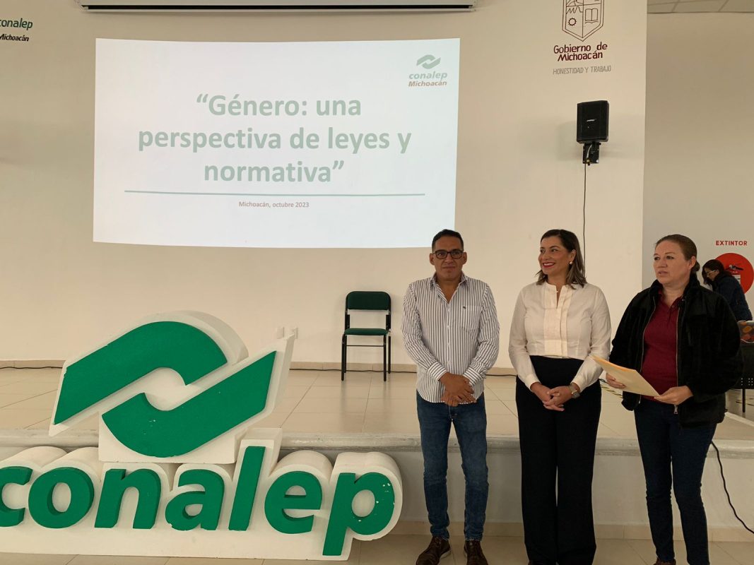 Morelia, Mich.,  27 de Octubre de 2023.- Personal directivo y administrativo de la Dirección General del Colegio de Educación Profesional Técnica del Estado de Michoacán (Conalep), recibió el curso Género: Una perspectiva de leyes y normativas, con aspiración a la Certificación de Espacios Libres de Violencia de Género de la Norma-046.