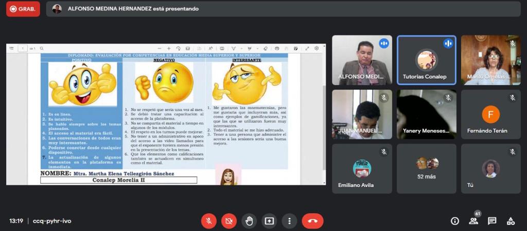 Morelia, Mich., a 04 de julio del 2022.- Más de 70 personas, entre docentes, personal administrativo y estudiantes de los 13 planteles del Colegio de Educación Profesional Técnica del Estado de Michoacán (Conalep), participaron en un diplomado basado en competencias para su actualización.