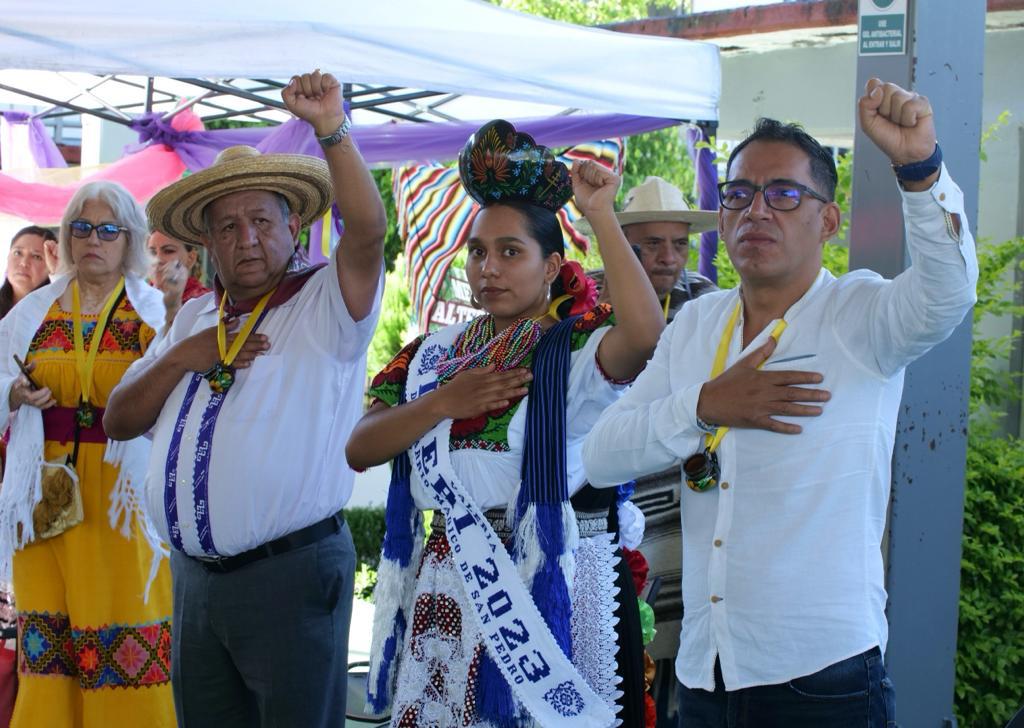 Agregó, “me siento orgulloso y honrado de haber participado en esta ceremonia que contó con la interpretación de nuestro Himno Nacional en lengua purépecha, a cargo del coro Tata Kuerajperi”.