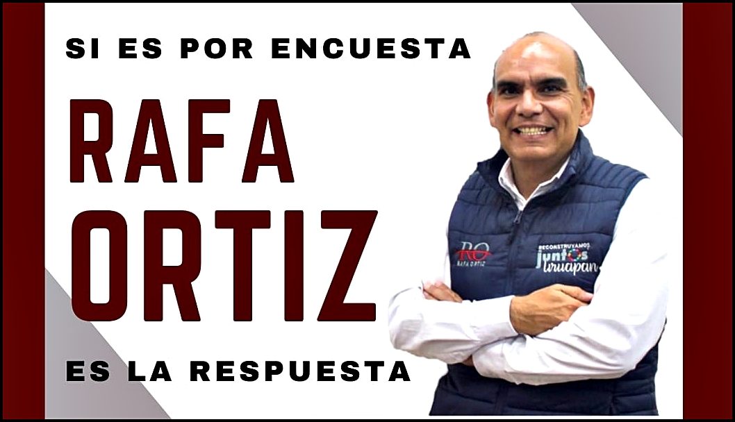 No lo olvides: En la encuesta tú decides. Rafa Ortiz es la mejor respuesta. Y es que el proyecto somos todos, pues todos somos Uruapan. Participa y decide tu futuro.