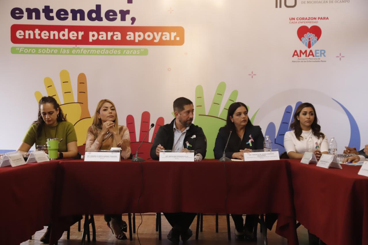 En el foro en el que también estuvieron presentes las y los legisladores Sandra Arreola, Alejandro Iván Arévalo, Grecia Aguilar, Alfonso Chávez y David Martínez, el Secretario de Salud en la entidad, Lázaro Cortés Rangel, informó que actualmente las enfermedades raras la padecen menos de 5 personas por cada 10 mil habitantes, que existen más de 6 mil tipos y aun cuando no se tiene un registro exacto de las que se padecen en Michoacán, la Hemofilia y el Sindrome de Turner son tratadas en la entidad.