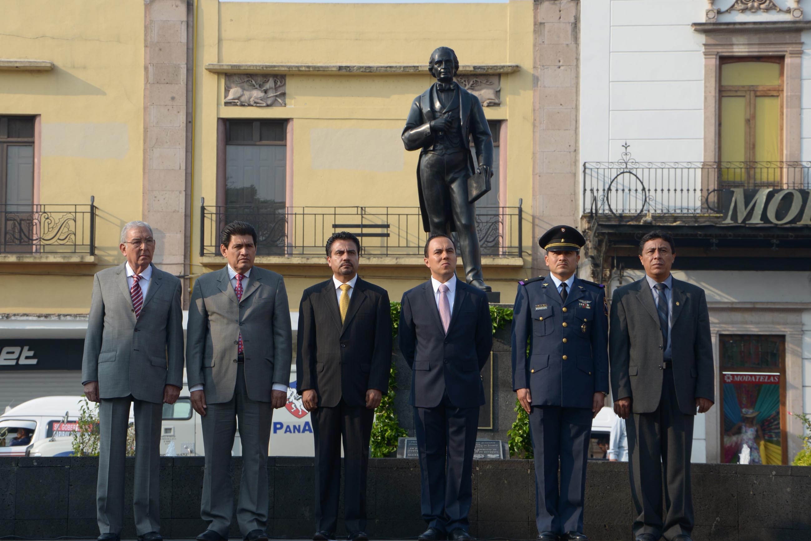 Morelia, Mich., a 04 de Junio del 2016.,- La mañana de este viernes, autoridades municipales encabezaron el acto conmemorativo al CLV aniversario luctuoso de Melchor Ocampo, ex gobernador del Estado de Michoacán, el cual fue realizado en la plaza que lleva su nombre en el Centro de la ciudad.