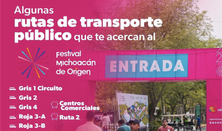 Morelia, Mich., 9 de Mayo de 2024.- Se acerca el Día de las Madres y uno de los mejores planes para celebrarla es en el Festival Michoacán de Origen, por ello la Secretaría de Desarrollo Urbano y Movilidad (Sedum) te comparte las rutas de transporte te llevan desde el primer cuadro de la ciudad al Centro de Convenciones y Exposiciones de Morelia (Ceconexpo).