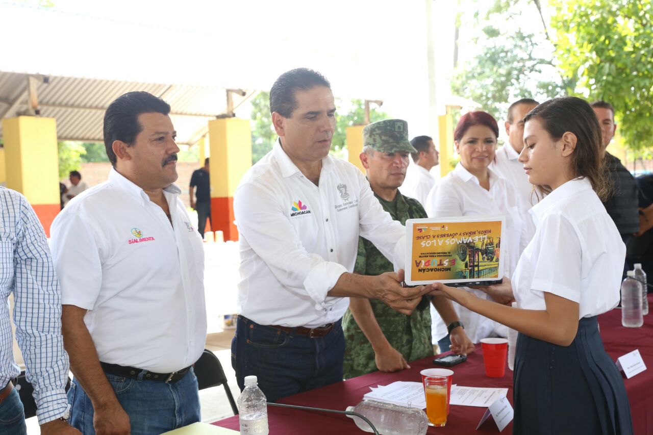 Finalmente, Silvano Aureoles entregó equipo de cocina para el desayunador de la comunidad y guitarras que serán entregadas a jóvenes de la localidad.