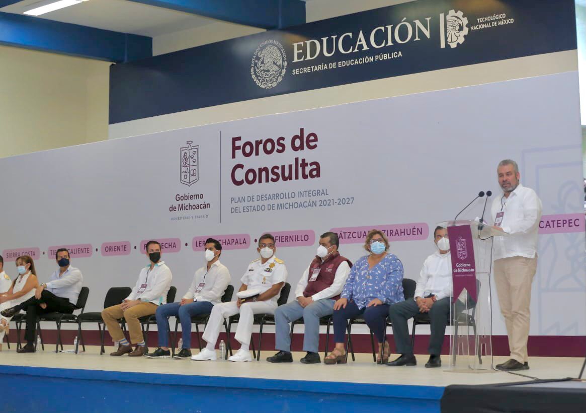 Lázaro Cárdenas, Mich., 30 de Octubre del 2021.- Sin exclusión, y basado en las propuestas que presenten diferentes sectores de la sociedad, el gobierno que encabeza Alfredo Ramírez Bedolla construirá el Plan de Desarrollo Integral del Estado 2021-2027.