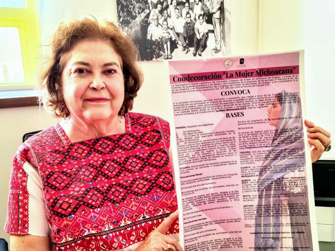Morelia, Mich., a 01 de Febrero 2023.- Este miércoles fue publicada la Convocatoria para la Condecoración “La Mujer Michoacana”, mediante la cual se pretende reconocer el esfuerzo individual o colectivo de mujeres en beneficio de Michoacán y su gente.