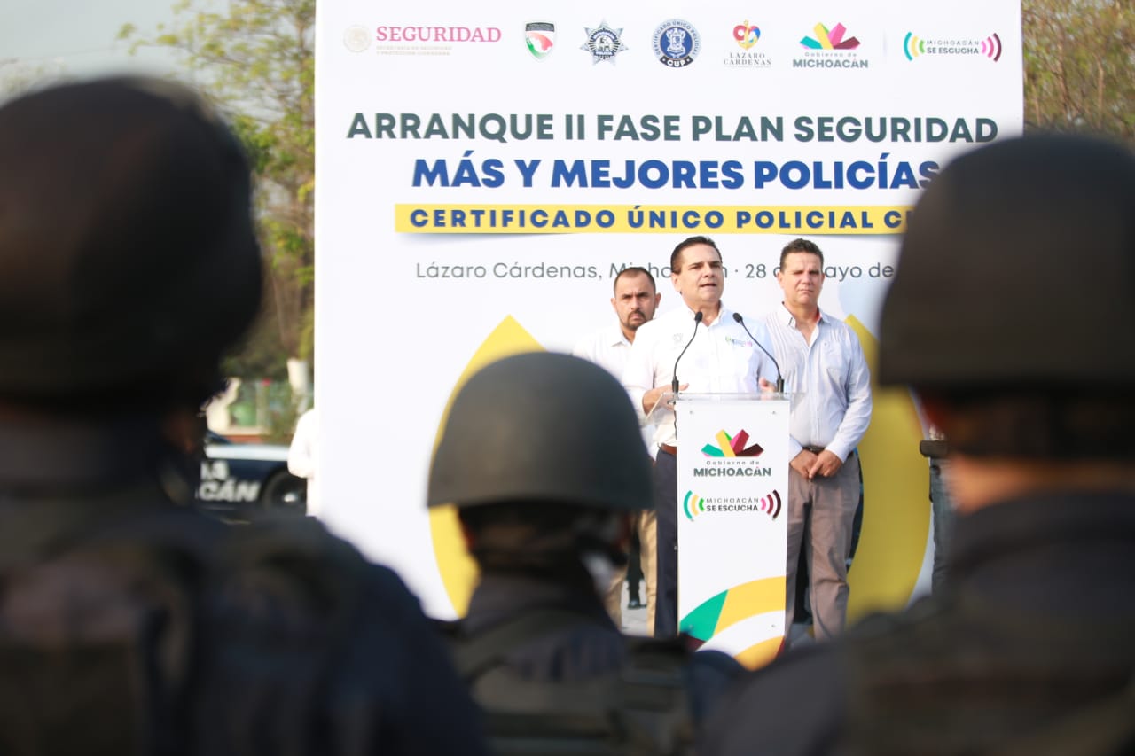 Esta segunda etapa del Plan Integral de Seguridad, implica el despliegue de 400 elementos de la Policía Michoacán, que atenderán los municipios de Lázaro Cárdenas, La Huacana, Churumuco y Tumbiscatío.