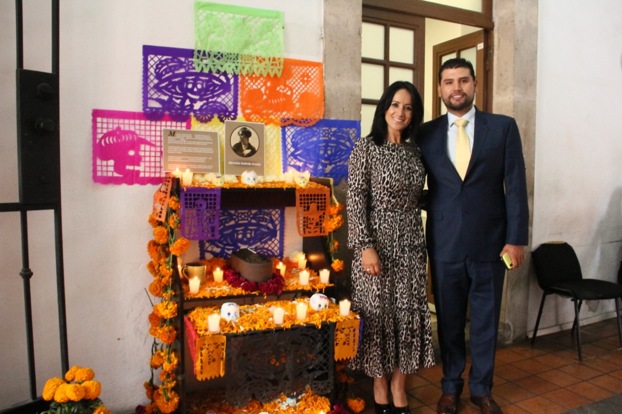 «Es a través de los altares que los mexicanos recordamos y reconocemos la vida y obra de las personas que dejaron huella en esta tierra, por ello, junto con mi equipo de trabajo quisimos homenajear a la primer mujer congresista federal de México, Hermilia Galindo Acosta, pionera en la lucha por la igualdad y los derechos políticos de las mujeres».