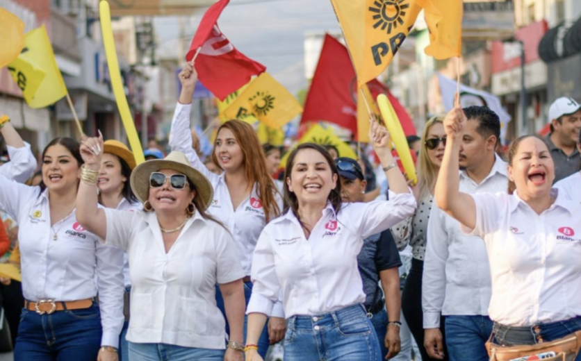 Apatzingán, Mich., a 16 de Abril de 2024.- La coordinadora del Partido Verde Ecologista de México en el Congreso Local, Margarita López Pérez, arropó y brindó todo su respaldo a la candidata a la presidencia municipal, Blanca Álvarez y los candidatos de la coalición “Fuerzo y Corazón por México” en Apatzingán.