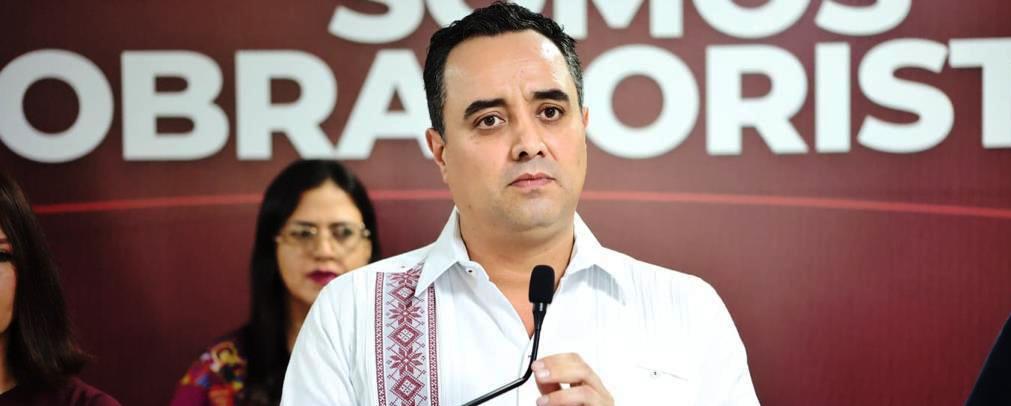 Morelia, Mich., 07 de Mayo del 2024.- El líder de Morena en Michoacán, Juan Pablo Celis Silva, instó al reeleccionista Alfonso Martínez a que aclare sus nexos con el exauditor Miguel Ángel Aguirre Abellaneda, ya que empresas vinculadas a él han recibido contratos millonarios del gobierno de Morelia.