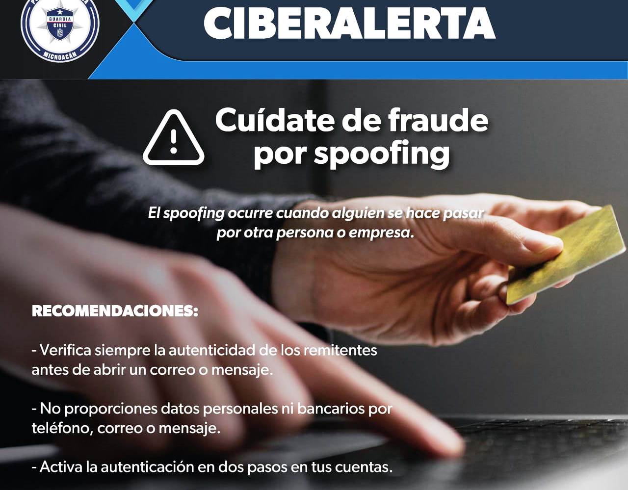Morelia, Mich, a 20 de Agosto del 2025.- Las tareas de investigación e inteligencia que realiza el personal de la Secretaría de Seguridad Pública (SSP), han permitido descubrir una modalidad de fraude en línea llamado “spoofing”, que consiste en la suplantación de identidad de una persona o empresa.