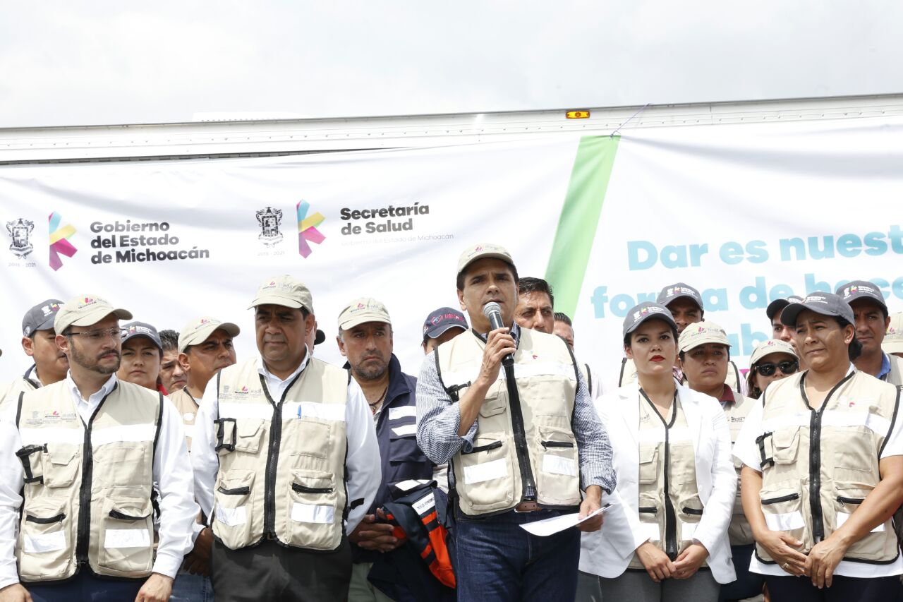 Con un estado de fuerza de 16 vehículos y un centenar de brigadistas de las ocho Jurisdicciones Sanitarias pertenecientes a la Secretaría de Salud de Michoacán, el Gobierno del Estado contribuye al apoyo de las comunidades con mayor afectación por el incidente sismológico, destacó el titular de la institución, Elías Ibarra Torres.