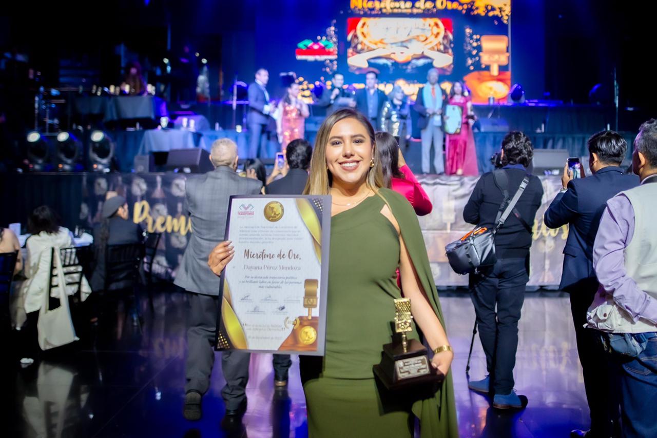 Salvador Escalante, Mich, a 11 de Diciembre del 2025.- La presidenta municipal Dayana Pérez Mendoza recibió el Micrófono de Oro Invierno 2025, la máxima distinción otorgada por la Asociación Nacional de Locutores de México A.C., en reconocimiento a su destacada trayectoria y a su labor social en beneficio de las familias más vulnerables del municipio.