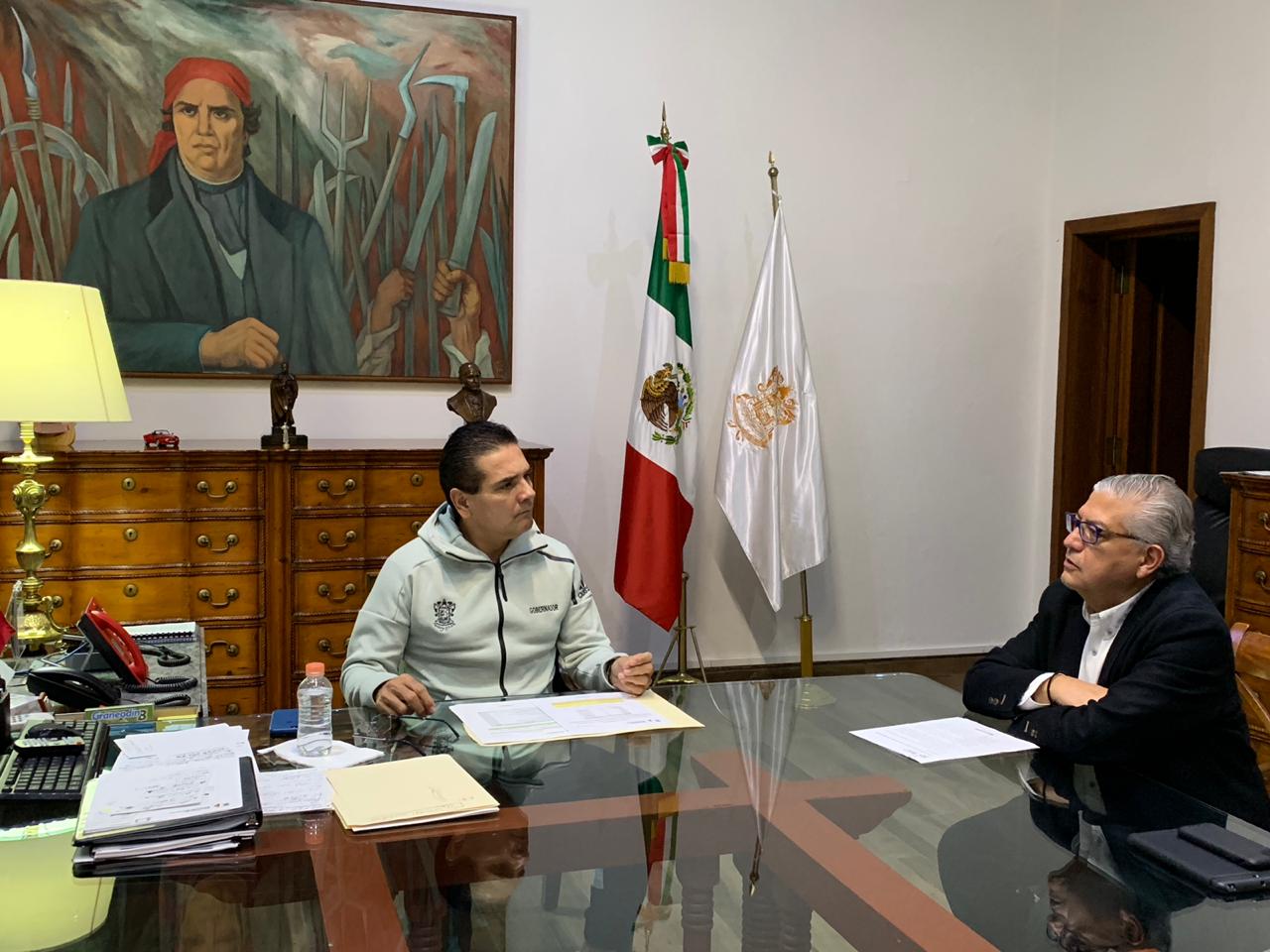 Morelia, Michoacán, a 2 de noviembre de 2018.- El Gobernador Silvano Aureoles Conejo analizó y delineó hoy con el secretario de Finanzas, Carlos Maldonado Mendoza, acciones sobre la situación financiera del Gobierno del Estado, y las proyecciones a corto y mediano plazo en la materia.