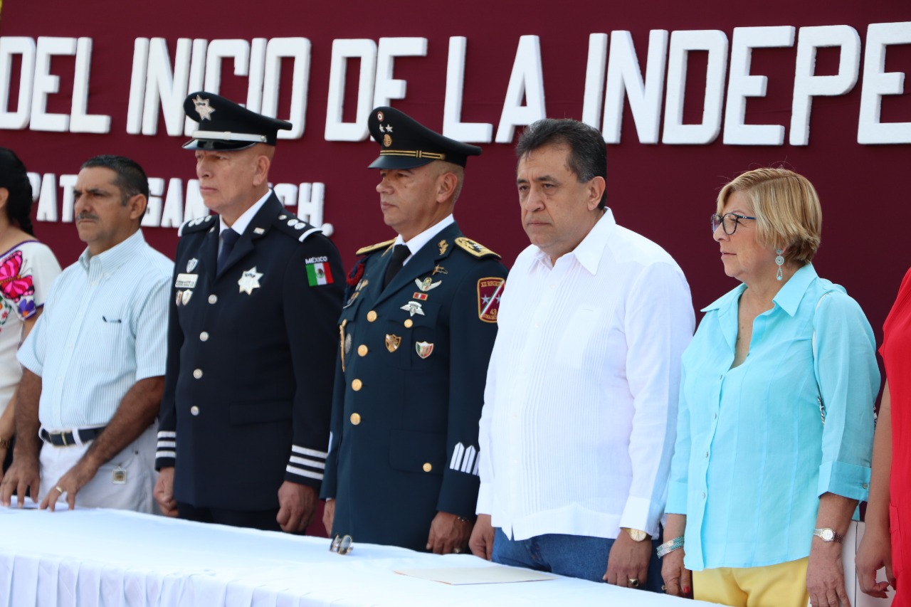 El presidente municipal, José Luis Cruz Lucatero, acompañado de su esposa, Minerva Guízar Brito y el general de la 43 Zona Militar, Darío Ávalos Pedraza, presenció el desfile en el que participaron diversas instituciones educativas, militares y personas de a caballo.