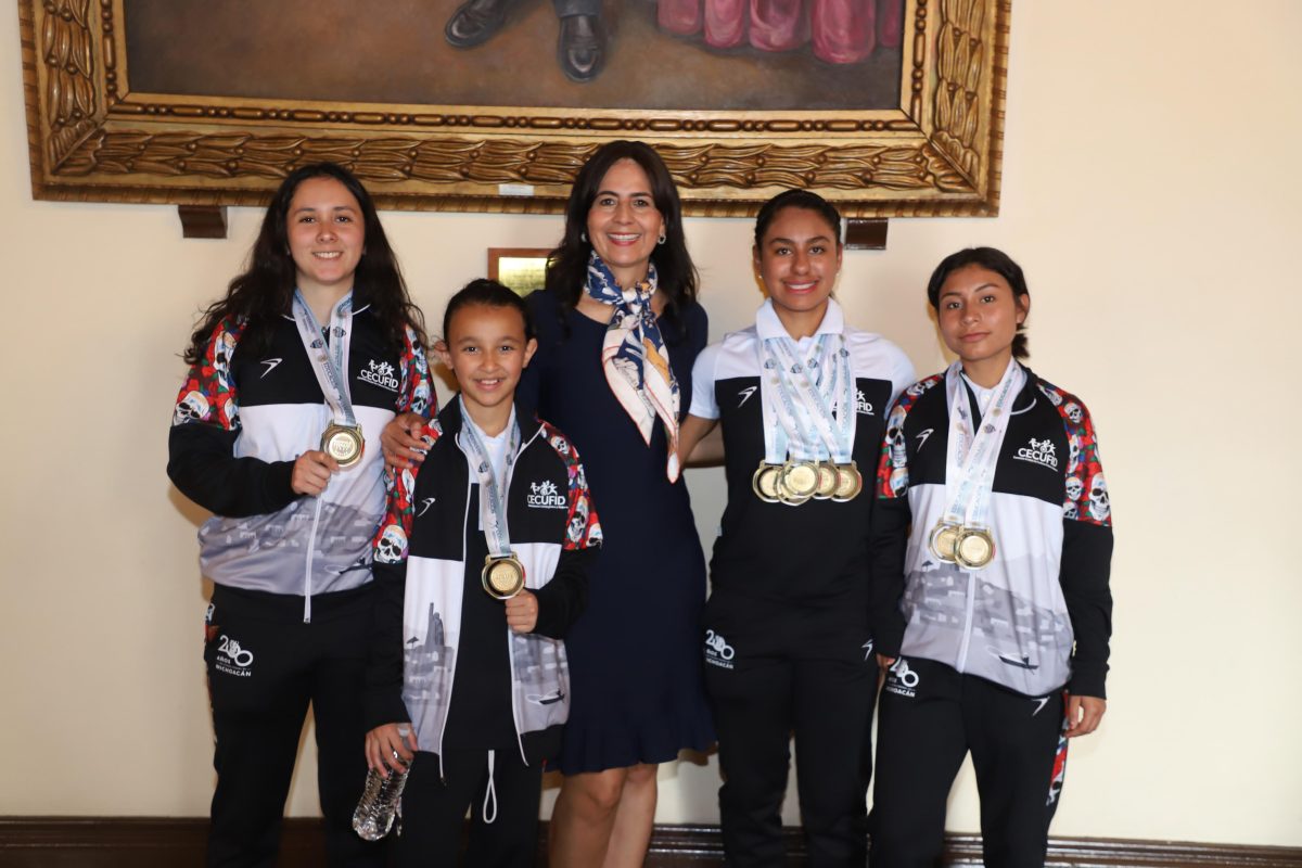 «Nos da mucho gusto que las y los jóvenes participen en este desfile deportivo, para recordar una de las fechas más importantes de nuestro país, como lo es la Revolución Mexicana», comentó la titular de la Secretaría de Educación, Gaby Molina, quien presenció el desfile junto a jóvenes medallistas michoacanos.