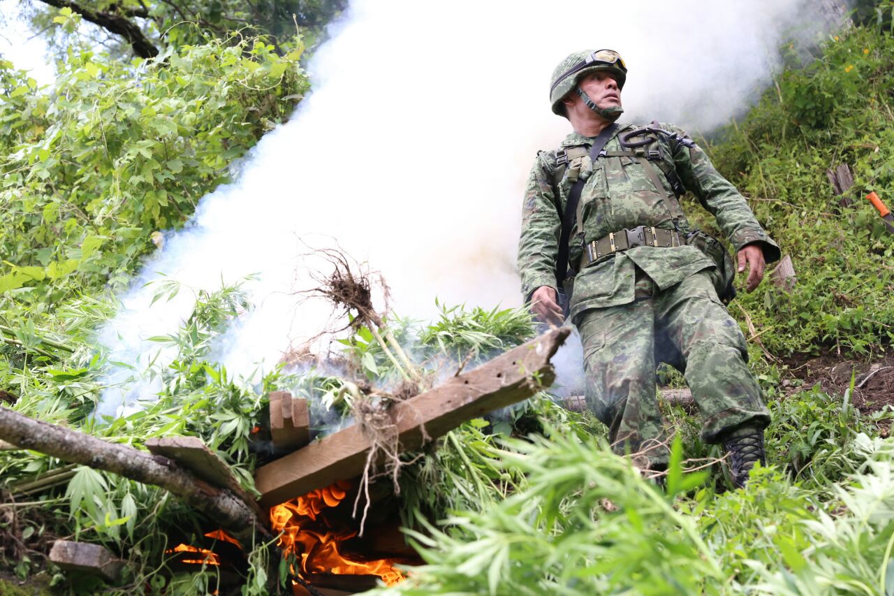 Acciones de inteligencia y vigilancia del territorio nacional, permitieron la identificación de ocho plantíos de este enervante, a 17 kilómetros al este de la cabecera municipal Villa Madero, por lo que de inmediato, elementos del doceavo Batallón de Infantería adscrito a la 21 Zona Militar, se trasladaron para proceder con la destrucción de estas plantas.