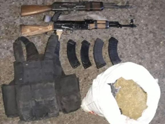 A los detenidos, identificados como René T., y Jesús M., les aseguraron armas de grueso calibre, cartuchos, cargadores, un chaleco táctico, droga y el vehículo que tripulaban contada con reporte de robo.