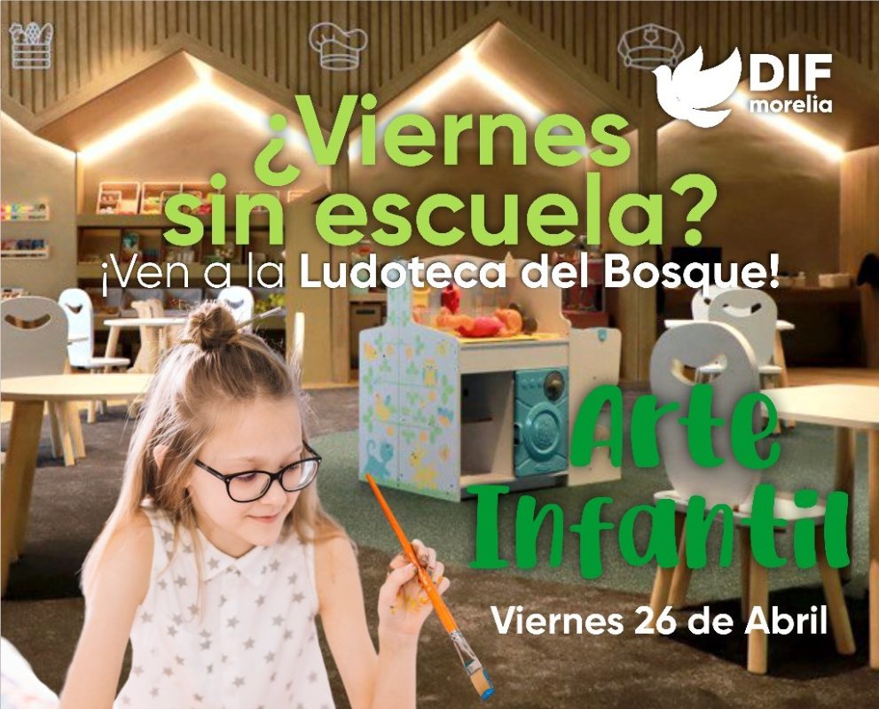 Morelia, Mich, a 25 de Abril de 2024.- Este viernes 26 de abril, la Ludoteca del Bosque del DIF Morelia invita a las niñas y niños de 4 a 12 años a un taller de Arte Infantil, como parte de las actividades especiales organizadas en el marco de los Viernes de Consejo Técnico Escolar, ofreciendo un espacio seguro y estimulante donde las y los niños pueden explorar su creatividad a través de diversas actividades artísticas.